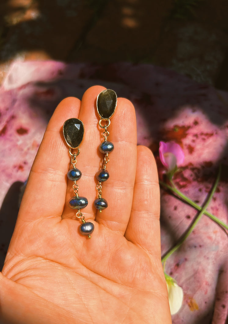 Golden Sheen Obsidian + Purple Pearl Drop Earring