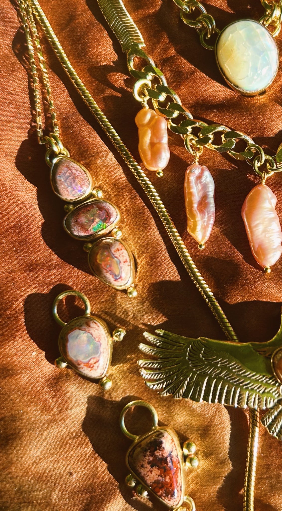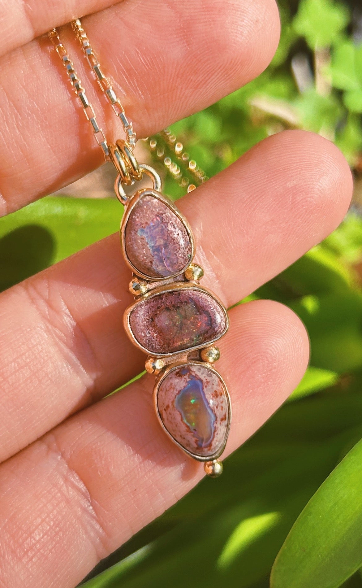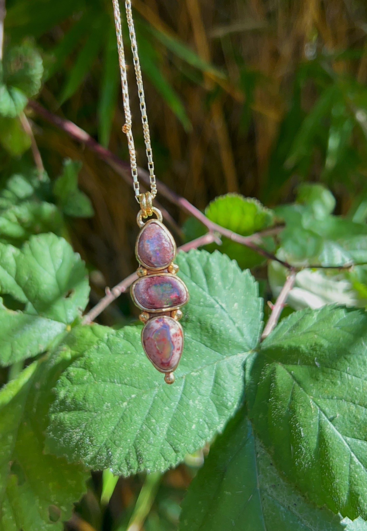 a favorite necklace style of mine, each stone pairing is picked intentionally and hand crafted in high polish jewelers brass - this one has a moodiness i love with the dark blue variance!