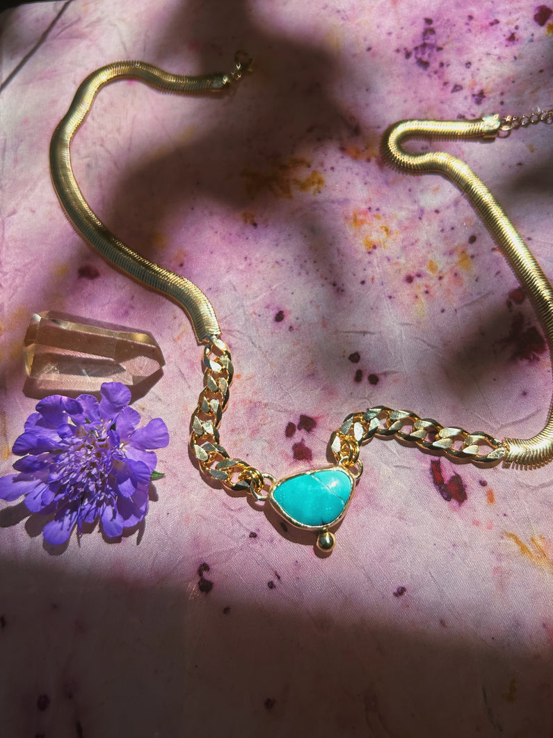 Herringbone X Cuban Link Chain - Kingman Turquoise