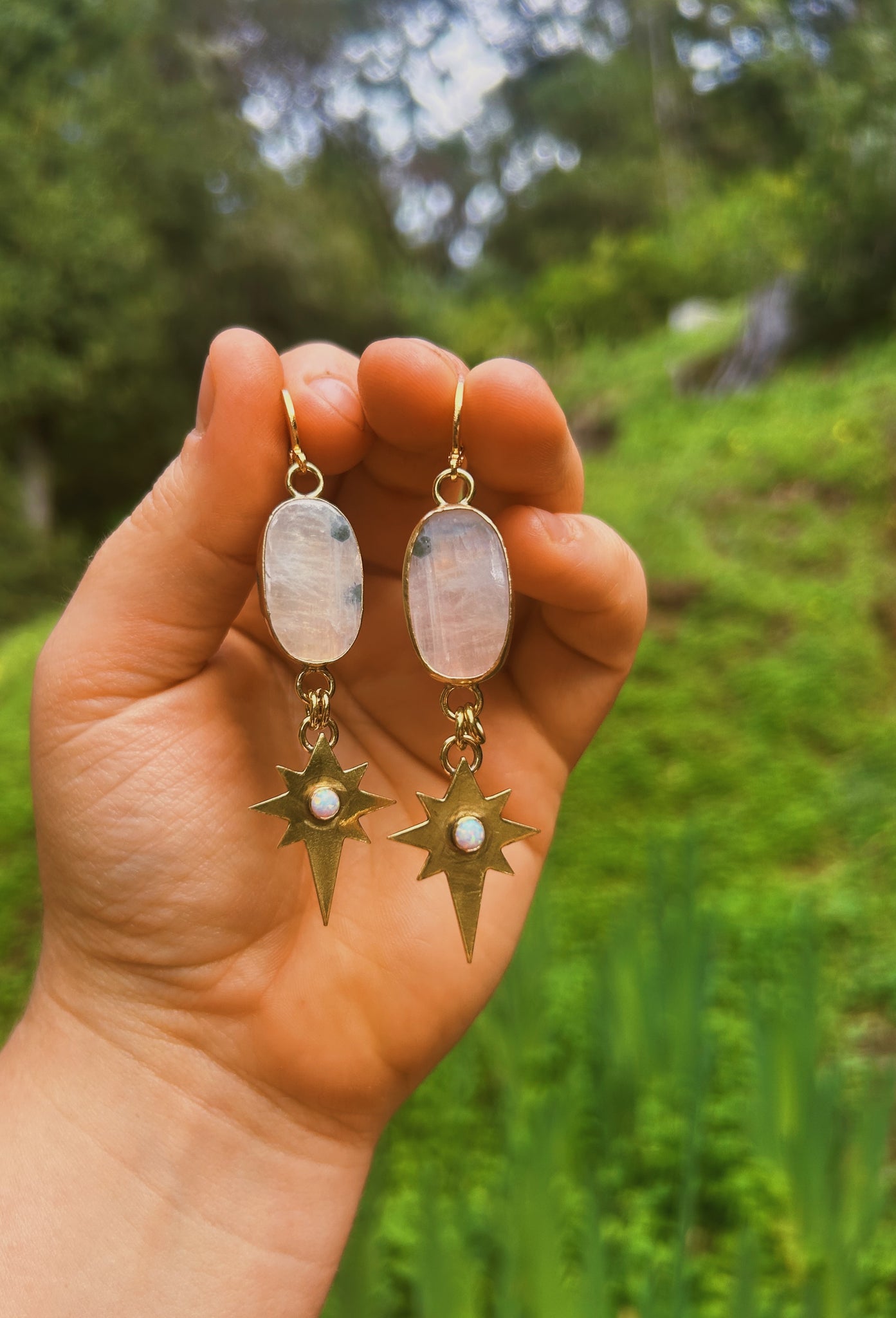 Moonstone + Opal Star Drop Earring