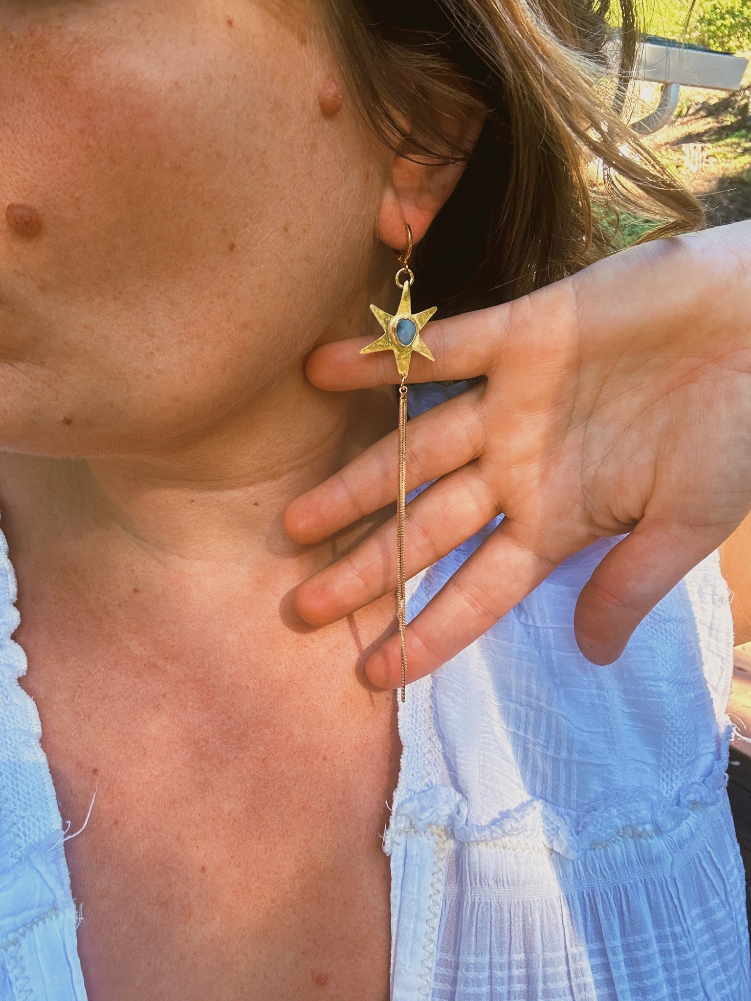 super lightweight these celestials are hand hammered and accented with particularly juicy stone pairings and gold fill tassel drop