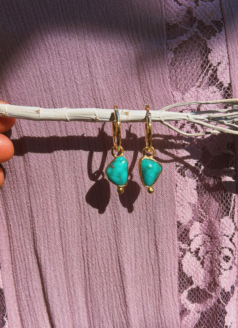 Kingman Turquoise w Pyrite Inclusion Hoops