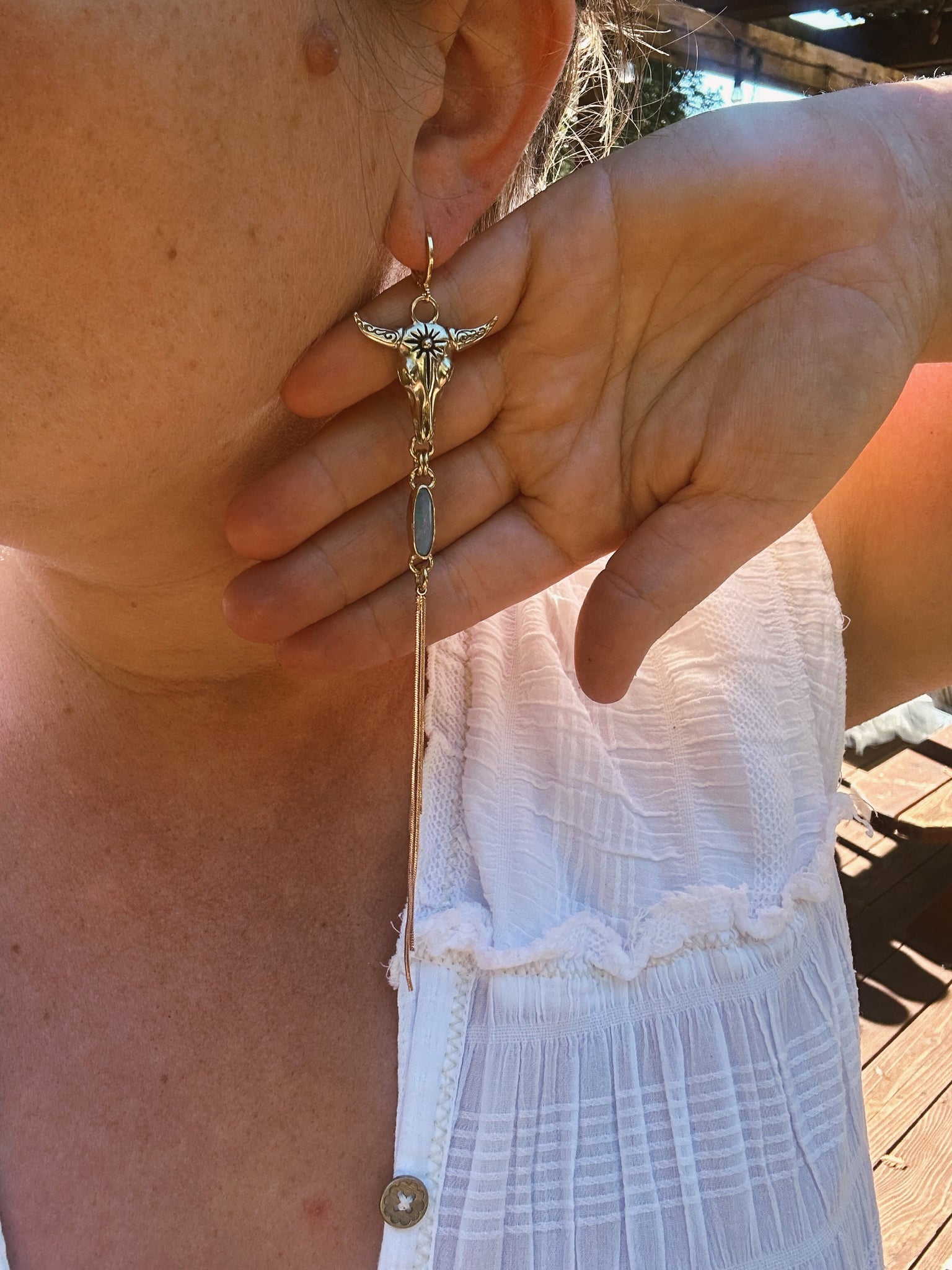 Star carved Taurus / Bull Skull with stone charm + goldfill tassel drop