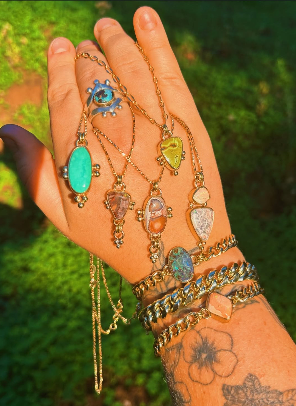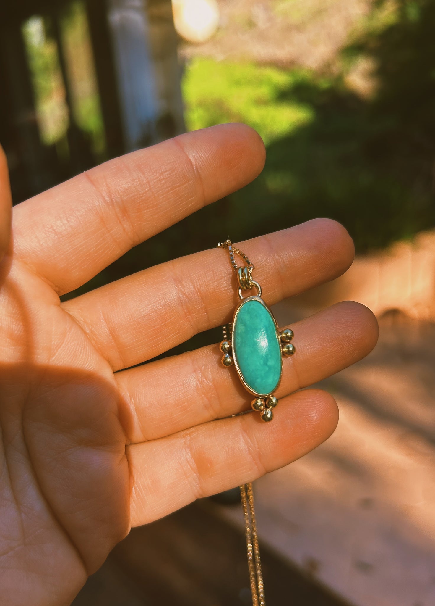 mega cutie Turquoise Chunk on a 18" goldfill chain